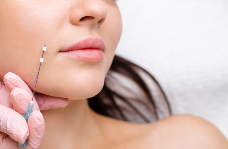 ショートスレッドとは、細くて短い糸(スレッド)を顔の皮下組織に挿入して留置する施術のことです。糸が装着された針を皮下組織に挿入し、針を抜く際に装着していた短い糸だけが皮下組織に留置される仕組みです。
